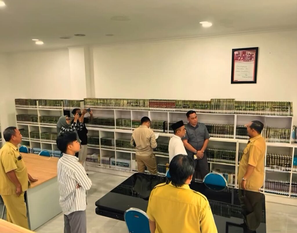 - Koleksi Buku Referensi: Anggota dewan memeriksa ketersediaan koleksi buku yang tertata rapi di rak-rak modern untuk memastikan kebutuhan riset masyarakat terpenuhi.